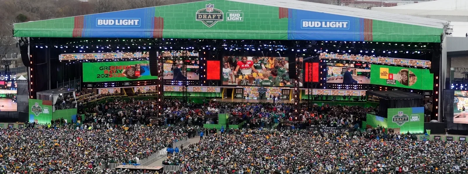 For the 2025 NFL Draft held outside Lambeau Field in Green Bay, I worked with the Van Wagner team to create the in-stadium motion graphics that energized the live audience throughout the entire event. The visuals created were designed to enhance the atmosphere during key moments, such as team selections, player introductions, and logos loops for all 32 NFL teams, providing a seamless and engaging experience for the over 600,000 fans in attendance.